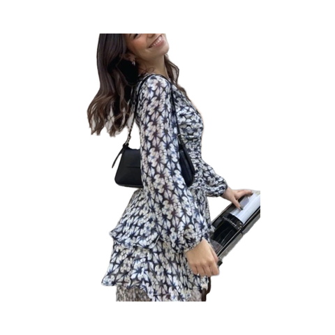 2025 여성용 오픈 숄더 프린트 롱 원피스 봄 여름 쉬폰 새로운 크로스 보더 리프 스티칭 대외 무역